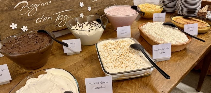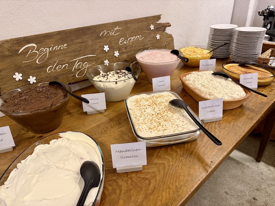 Zum süßen Abschluss wartete unser beliebter „Oma-Dessert“, begleitet von Vanille- und Schokoladenmousse, Himbeermeringue, Karamellcreme und noch vielem mehr.