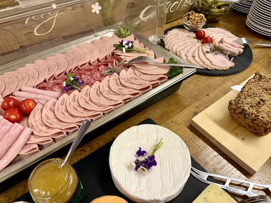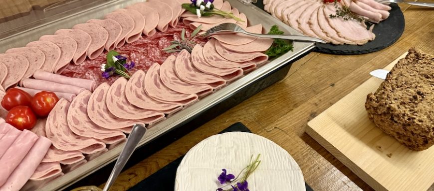 Trotz des eher trüben Wetters durften wir heute ein rundum gelungenes Frühstücksbuffet in unserer Hofscheune erleben. Mit viel Liebe haben wir Käse- und Wurstplatten mit frischen Blumen und duftenden Kräutern dekoriert – ein Hauch von Frühling, den wir gerne für unsere Gäste in die Hofscheune brachten.