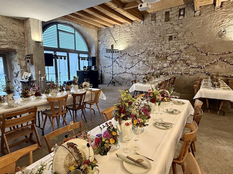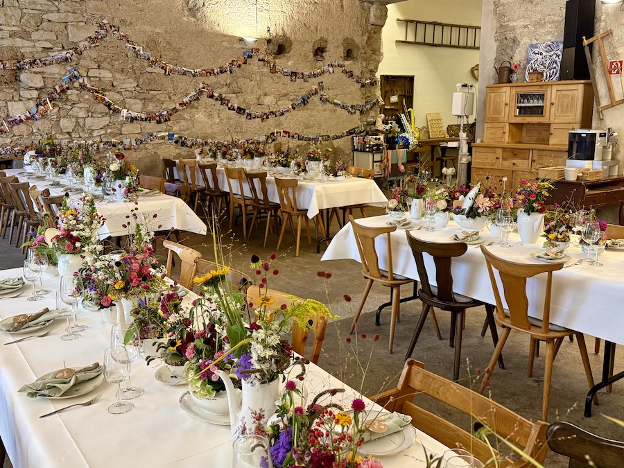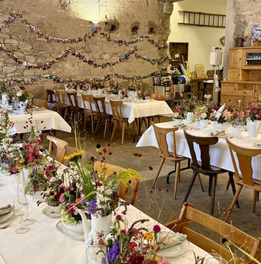 Zur Info: Bitte beachten Sie, dass wir in unserer Hofscheune lange Tischreihen haben, an denen weitere Gäste sitzen.